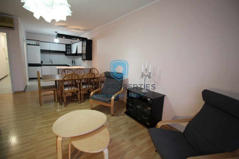 QAWRA – Situated in a modern block served with lift is this apartment that has been finished to a good standard. Layout consists of an entrance hall that leads to an open plan Kitchen/Living/Dining served with front terrace. Following is the main bathroom and three double bedrooms all connected with rear balcony. Main bedroom served with a large en-suite. Separate spacious washroom/Utility room. Property is being sold furnished.