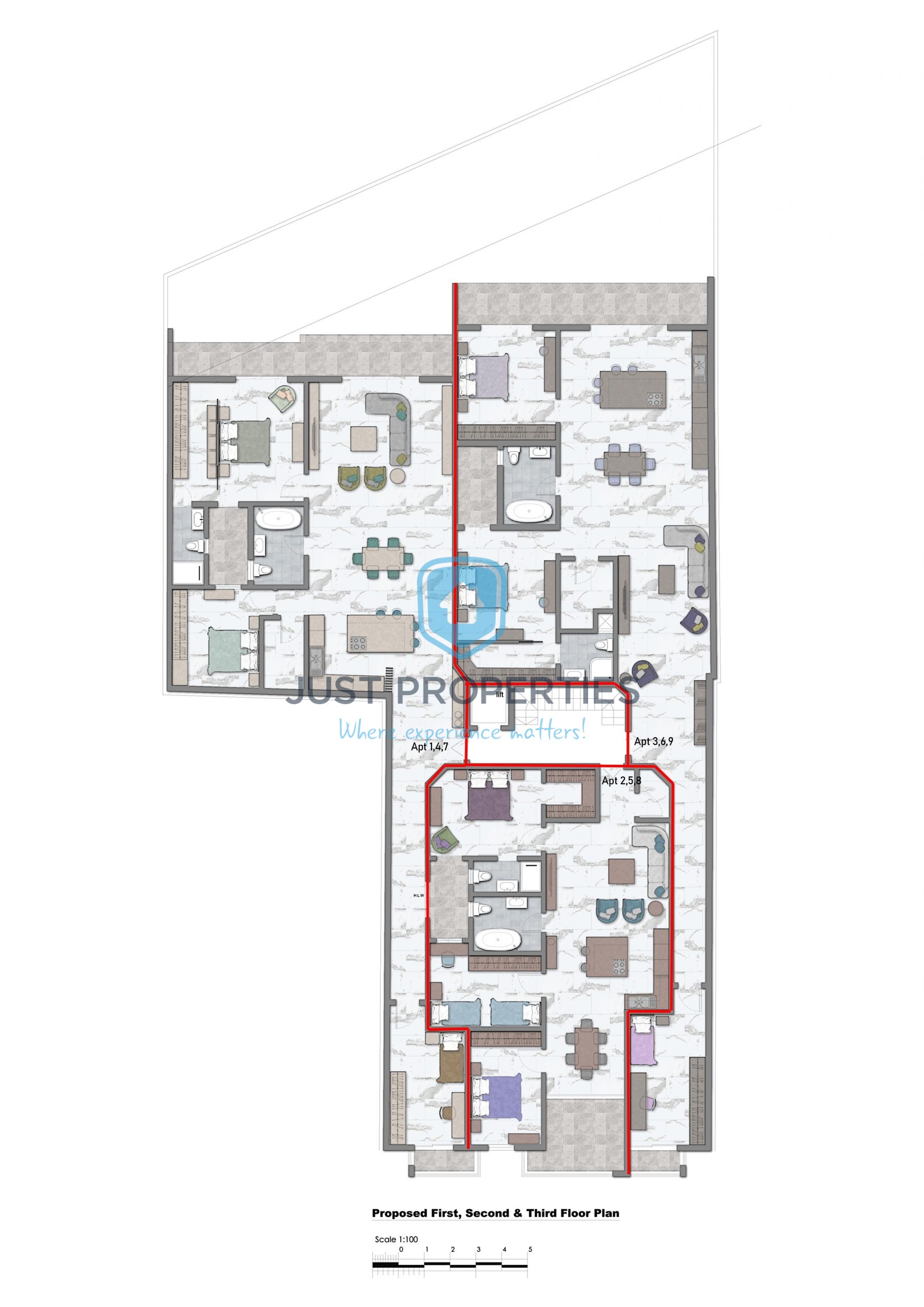 QAWRA – Centrally located is this new penthouse with great layout. Premises consists of an open plan Kitchen, living, Dining served with front terrace which measures 12sqm. Following is the main bathroom and three bedrooms main with en-suite. Second bedroom also has access to another well sized rear terrace. Premises being sold finished excluding doors and bathrooms. Optional garages also available. Freehold