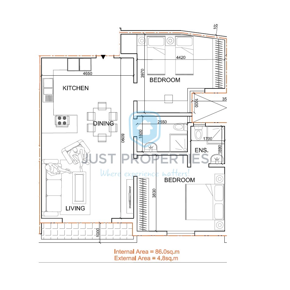 BIRKIRKARA- Located in this central area is this apartment. Layout consists of an open plan Kitchen, living, Dining served with front terrace. Following is the main bathroom and two bedrooms main with En-suite. Premises is being sold finished excluding doors and bathrooms. Optional garages also available.