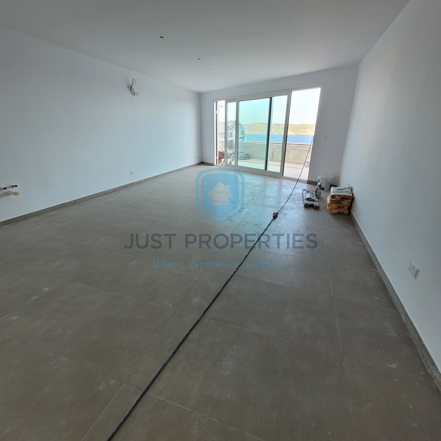BUGIBBA- Located in this prime seafront position is this penthouse which measures 122 SQM. Layout consists of an open plan Kitchen, Living, Dining served with front terrace with guaranteed direct sea views. Following is the main bathroom, separate Box room and Master bedroom with En-suite and balcony. Premises is being sold finished including doors and bathrooms.
