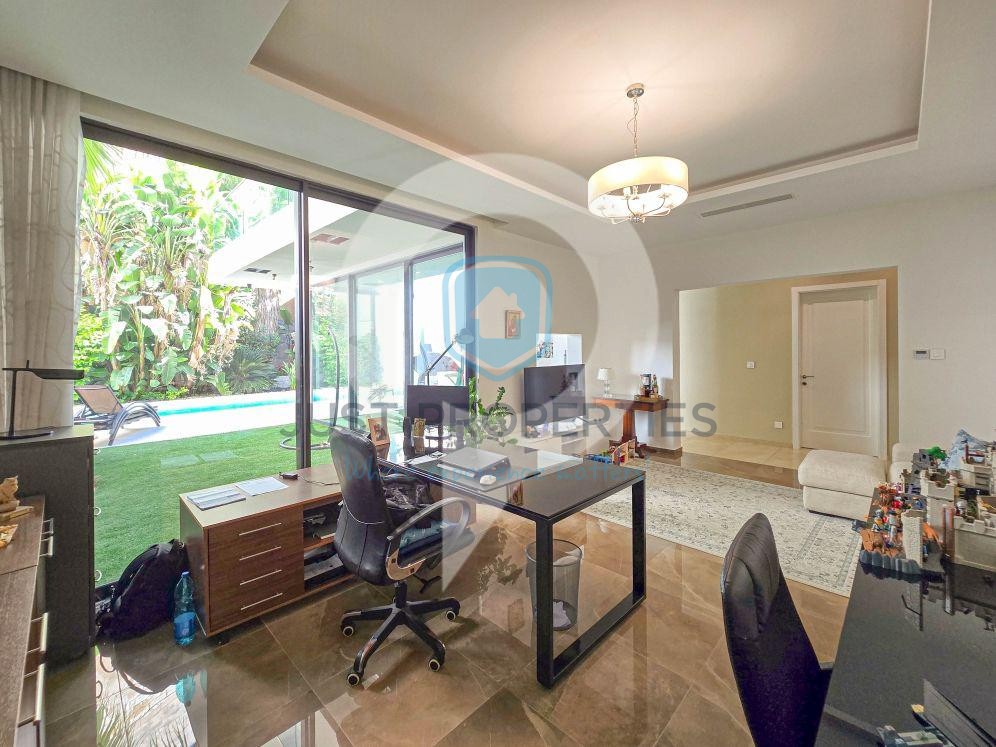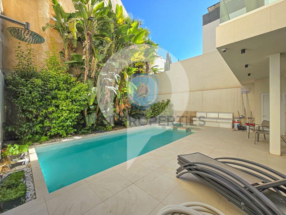 IKLIN- Once in a while, a stunning bungalow appears, and this one ticks all the boxes. Modern , luxuriously finished semi detached Bungalow in the upper IKLIN . With a generous plot of 480 sqm , mature lush gardens with palm trees, a drive in , two car garage , open plan kitchen , living and dining room , 12m private pool with Jacuzzi, bbq area, four bedrooms ( two with en- suite ) , five bathrooms, laundry , large study , wine cellar, games room, gym, CCTV, alarm system , double glazed apertures, insulated walls and roof and sixteen solar panels . Spiral Wrought iron & Marble Staircase, Book your private viewing of this ready to move into beauty by call Nathan on 99257189 or Jostev on 79024044