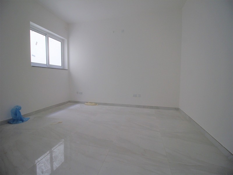 QAWRA- Located in this new building is this apartment served with lift and measures 94SQM. Layout consists of an open plan Kitchen, Living, Dining served with front terrace. Following is the main bathroom and two bedrooms main with en-suite. Premises is being sold finished included fitted bathrooms. Optional garages also available.