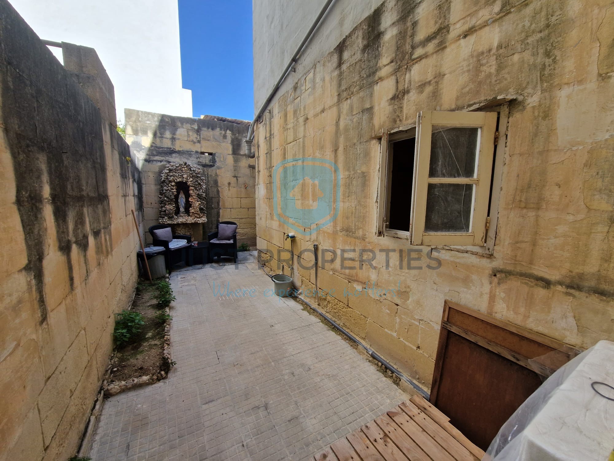 ST PAULS BAY- Located in this residential area of the village is this traditionally styled maisonette. Layout consists of a living and dining area upon entrance. Following is the master bedroom with walk-inn closet. From here one then finds a kitchen and bathroom to the rear and access to a good sized back yard. Premises has been carefully restored with new water and electricity, All stonework has been stripped and restored emphasizing exposed stonework, New bathroom and sanitary ware also fitted and installed. Premises is Freehold. Enquire within for further details Phone-00356 99257189
